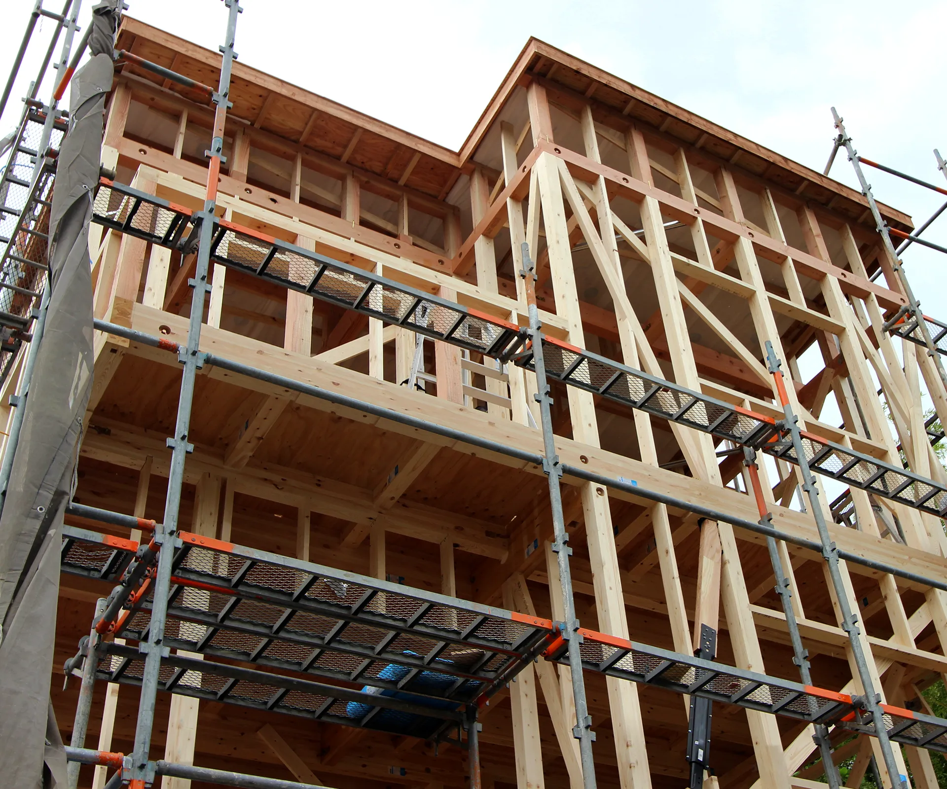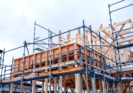 新築戸建の工事に対応します。住まいづくりは工程が多く、段階ごとに確認が必要になるため、打ち合わせを重ねながら進め方を整理します。