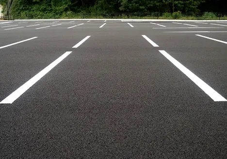 お店や事業所の敷地では、出入口の位置や動線の流れを確認しながら、使いやすい配置を整えます。駐車スペースや通路の幅、歩行者の通る場所など、用途に応じて区画を分けます。雨水が溜まらないよう適切な勾配をつけて施工し、敷地全体の水の流れを整えます。ラインの引き方や駐車スペースの番号、車止めの設置など、運用面での使いやすさも考えながら施工します。